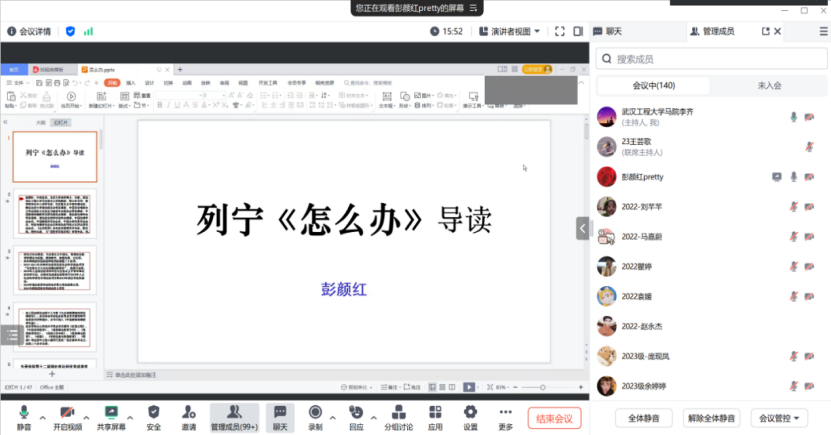 ¿Î³Ì×îÏÈʱ£¬ÅíÑÕºì½ÌÊÚÏò¸÷ÈËÐðÊöÁËÑ¡ÔñÁÐÄþ¡¶Ôõô°ì¡·×÷Ϊ±¾ÆÚѧÊõÔ˶¯Ö÷ÌâµÄÔµ¹ÊÔÓÉ¡£ËýÇ¿µ÷£¬¡¶Ôõô°ì¡·ÊÇÁÐÄþ¸ïÃüÎÄÏ×ÖеľµäÖ®×÷£¬¶ÔØÊºóµÄ¸ïÔËÆø¶¯ºÍÂí¿Ë˼Ö÷ÒåÀíÂÛÉú³¤±¬·¢ÁËÉîÔ¶µÄÓ°Ï졣ͬʱ£¬¸ÃÊ鹨ÓÚÂÛÎÄд×÷¾ßÓÐ¶à·½ÃæµÄ×ÊÖúºÍÆôʾ×÷Óá£Åí½ÌÊÚÏ£Íû£¬Í¨¹ýÉîÈëÑжÁºÍ½è¼ø¸ÃÊéµÄÄÚÈݺÍÒªÁ죬Äܹ»ÌáÉýͬÑâÃÇÂÛÎĵÄÀíÂÛÉî¶È¡¢Âß¼ÐÔºÍÏÖʵ¾ì×¢¶È£¬ÎªÂÛÎĵÄÀÖ³É׫дµÓÚ¨¼áʵ»ù´¡¡£