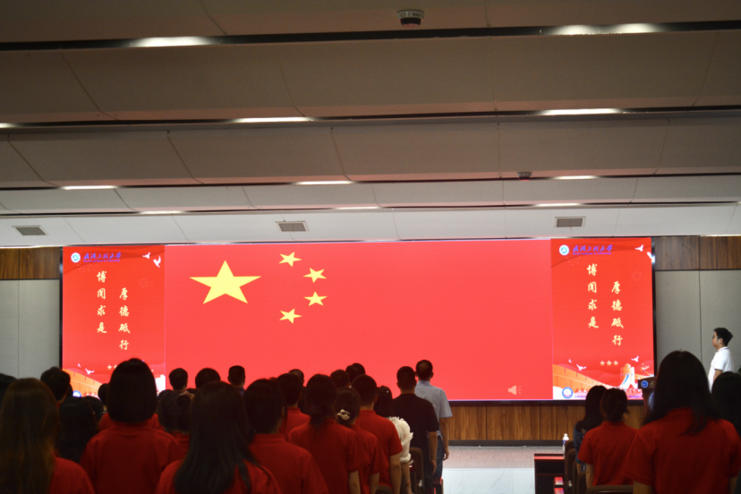 仪式伊始,全体起立,奏唱国歌。