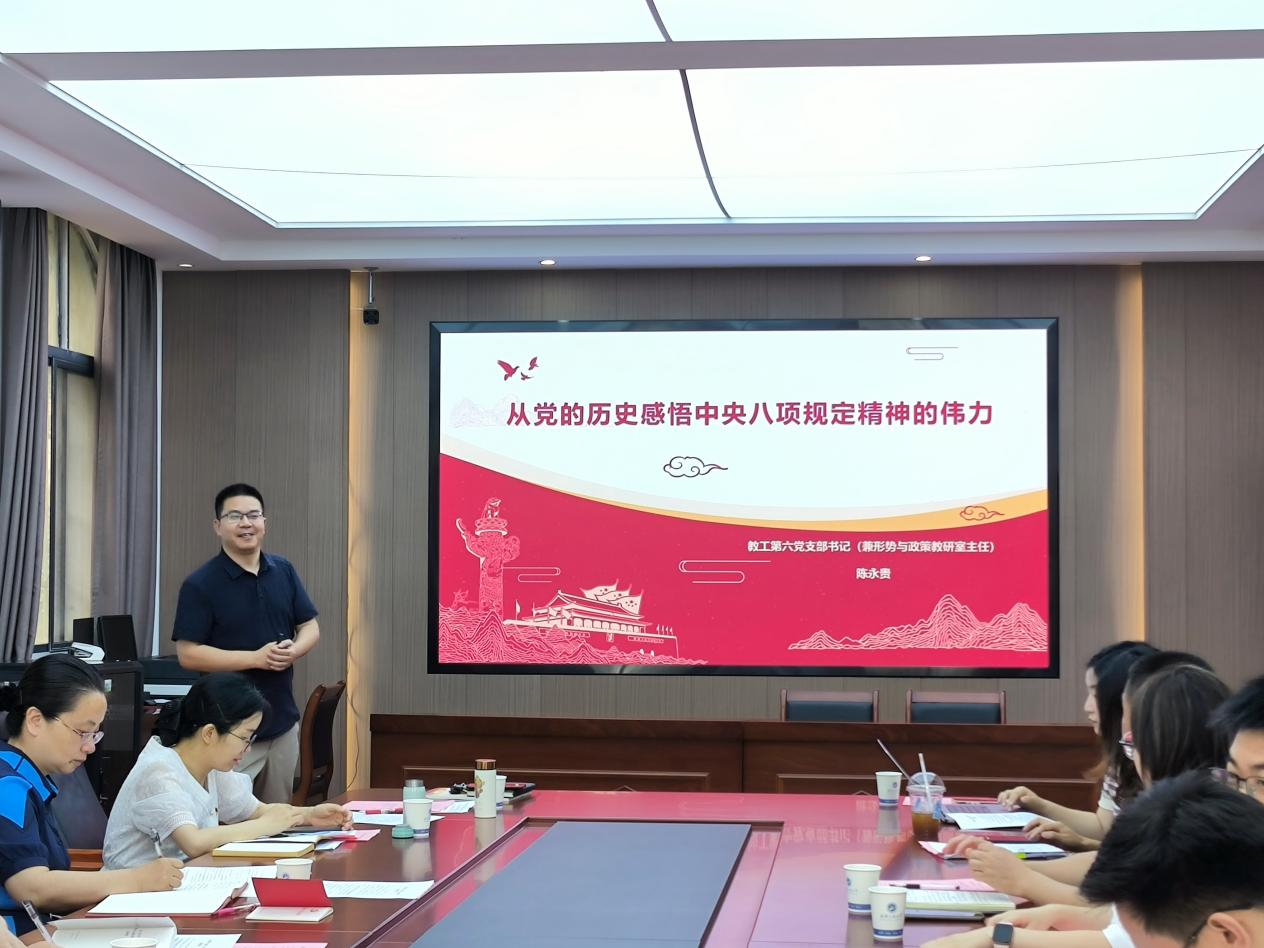 ѧԺ½Ì¹¤µÚÁùµ³Ö§²¿Êé¼Ç³ÂÓÀ¹óÒÔ¡¶´Óµ³µÄÀúÊ·¸ÐÎòÖÐÑë°ËÏî»®¶¨¾«ÉñµÄΰÁ¦¡·ÎªÌ⣬ΪÓë»áµ³Ô±½ÌѧÁËÉîÈë¹á³¹ÖÐÑë°ËÏî»®¶¨¾«Éñѧϰ½ÌÓýרÌâµ³¿Î¡£Ëû´Ó¡°ÖÐÑë°ËÏî»®¶¨¼°ÆäЧ¹û¡¢ÖÐÑë°ËÏî»®¶¨¾«ÉñÄÚÔÚ¡¢ÖÐÑë°ËÏî»®¶¨ÓëÖÐÑë°ËÏî»®¶¨¾«ÉñµÄÇø±ðÁªÏµÒÔ¼°´ÓÈý´ó¼ÍÂɰËÏî×¢ÖØ¸ÐÎòÀúÊ·µÄʵÁ¦¡±µÈËĸö·½ÃæÀ´¾ÙÐÐÐðÊö£¬²¢Ö¸³ö´Ó¾®¸ÔɽʱÆÚµÄ¡°Èý´ó¼ÍÂɰËÏî×¢ÖØ¡±µ½ÑÓ°²Õû·çÔ˶¯£¬´Óµ³µÄÆß½ì¶þÖÐÈ«»á¡°ÁùÌõ»®¶¨¡±µ½ÐÂʱ´úµÄÖÐÑë°ËÏî»®¶¨£¬ÔÙµ½ÉîÈë¹á³¹ÖÐÑë°ËÏî»®¶¨¾«Éñ£¬µ³µÄ×÷·ç½¨ÉèʼÖÕÓëʱ´úͬƵ¹²Õñ¡£ÏÖÏÖÔÚ£¬¡°Èý´ó¼ÍÂɰËÏî×¢ÖØ¡±µÄÐýÂÉʱ¿ÌÌáÐÑÈ«Ìåµ³Ô±£¬²»Íü³õÐÄ¡¢ÇмÇʹÃü£¬Ê¼ÖÕÓëÈËÃñË×ÓêͬÖÛ¡¢ÓëÈËÃñÐÄÐÄÏàÓ¡£¬ÎªÃñ×åÔÙÆðºÍÇ¿¹ú½¨ÉèТ˳ÖǻۺÍʵÁ¦¡£