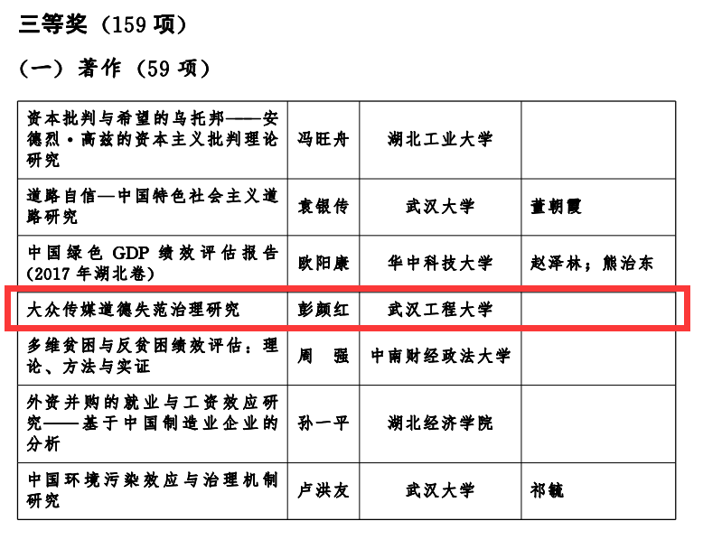 我院副教授彭颜红博士在人民出书社出书的专著《公共传媒品德失范治理研究》喜获第十二届湖北省社会科学优异效果奖三等奖,这是我校今年该奖项唯一的获奖作品。克日,湖北省人民政府揭晓了第十二届湖北省社会科学优异效果奖的转达(鄂政发[2020]24号),宣布了本届获奖作品,并希望全省宽大社会科学事情者为谱写湖北高质量生长新篇章作出更大孝顺。