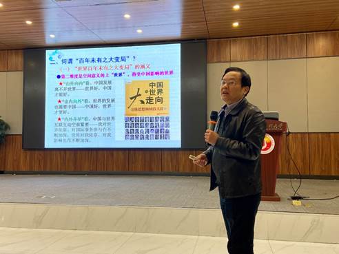 随后舒先林教授从三个维度为各人解读了何谓“百年未有之大变局”,第一维度是时间意义上的“百年”,是虚指而非实指,第二维度是空间意义的上“天下”,指受中国影响的天下,第三维度是历史变迁意义的“大变局”,即天下生长时势。紧接着他从全球视野向同砚们解说了大变局的详细体现,第一个方面是国际政治多极化之变百年未有,天下实力比照泛起“东升西降”“新升老降”;第二个方面从天下经济角度阐释经济全球化之变百年未有,主要体现在二战以来经济全球化带来天下经济活跃和昌盛,近年一股逆全球化潮流在美国等蓬勃国家涌现;第三个方面是人类文明多元化之变百年未有,种种文明相互激荡;第四个方面是社会生长智能化之变,以科技生长的奇异视角向同砚们展示人工智能引起的巨变;最后一个方面是全球治理民主化之变,已往百年主要由西方掌控国际规则和全球治理权,随着新兴经济体群体崛起助推全球治理民主化。