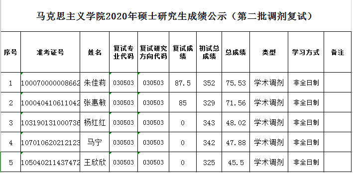 人生就是博2020年硕士研究生效果公示(第二批调剂复试)